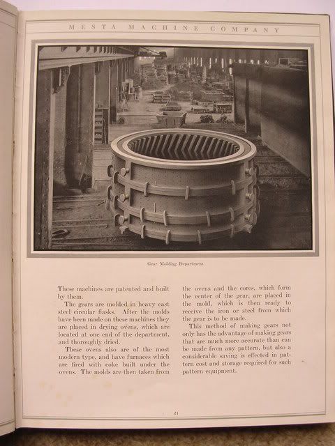 I have a 1919 catalogue from this company, it is a large hardbound book of 127 pages, packed with great photos of a wide range of heavy equipment. Here are a few pages. It looks like some of them have been touched up - especially the floor and some castings.